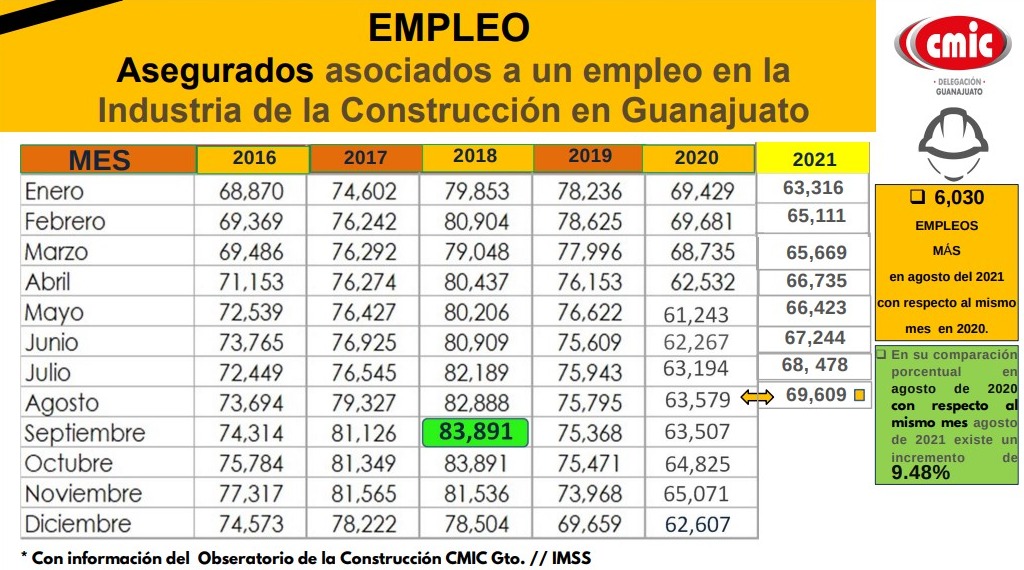 Las cifras con corte a agosto de 2019 alcanzaron 75 mil 795 empleos, mientras que este año se ubican en 63 mil 579 empleos registrados ante el Instituto Mexicano del Seguro Social (IMSS).