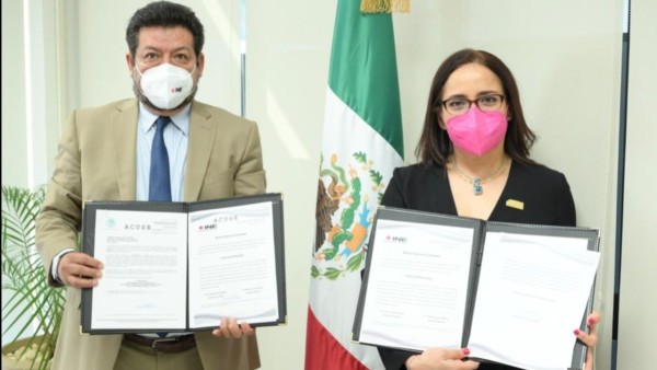 El documento entregado a la consejera presidenta, Brenda Canchola Elizarraraz, contiene la firma del consejero presidente del Consejo General del INE, Lorenzo Córdova Vianello y del Secretario Ejecutivo del propio organismo, Edmundo Jacobo Molin.