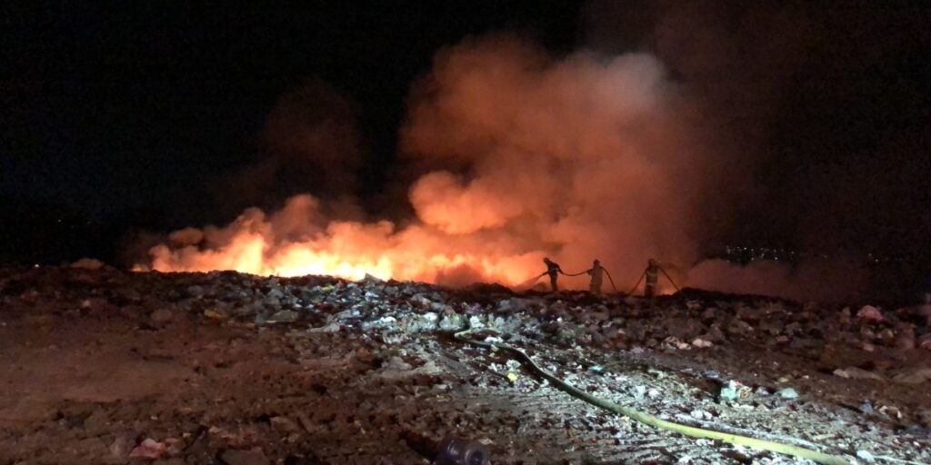 Pasadas las 20:00 horas de este viernes, se recibió un reporte de incendio en el tiradero municipal, lo que provocó la movilización inmediata del Cuerpo de Bomberos de la ciudad.