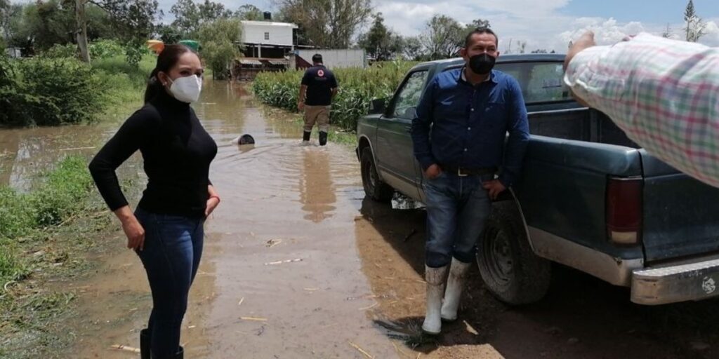 La secretaria de Gobierno, Libia Dennise García Muñoz Ledo, informó que se realizan recorridos en la zona y se utilizan drones para evaluar los daños. Además, comenzaron a bombear agua y colocar bordos para mitigar las afectaciones.