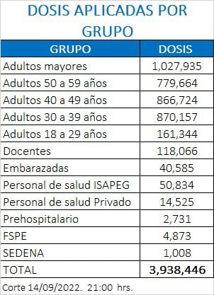 Los datos generales de la población con cuadro completo de vacunación hasta el corte de las 9 de la noche de este martes 14 de septiembre es de un millón 679 mil 878 personas.