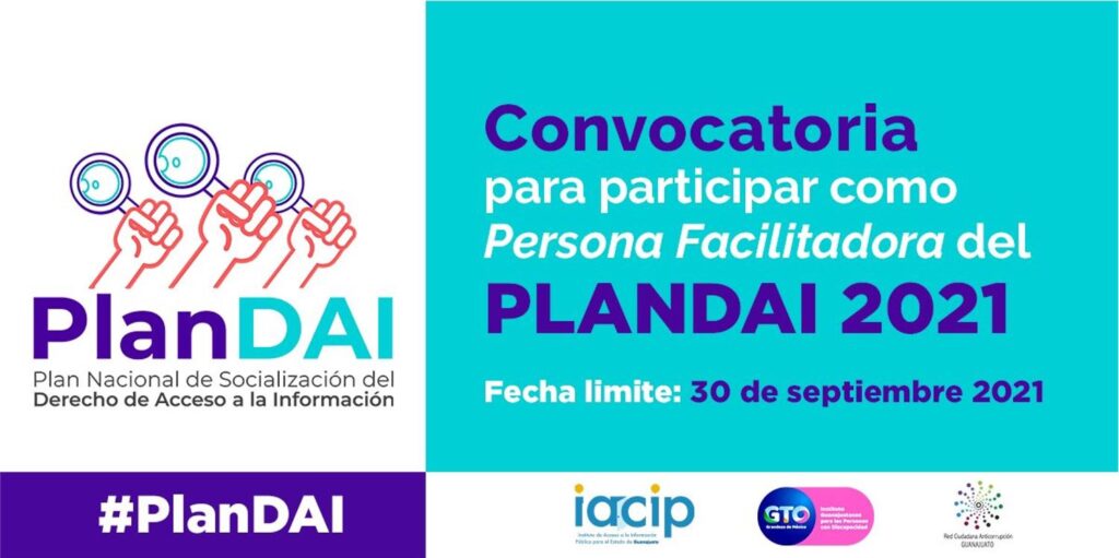 En el marco de la implementación del Plan Nacional de Socialización del Derecho de Acceso a la Información 2021, el Instituto de Acceso a la Información Pública para el Estado de Guanajuato (IACIP) invita a la juventud guanajuatense a participar en la convocatoria para participar como ‘Persona facilitadora del Derecho de Acceso a la Información’.
