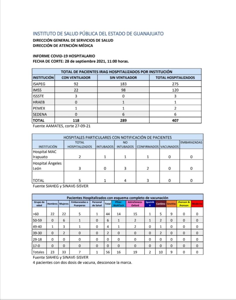 De las 26 muertes por coronavirus reportadas este martes por parte de la Secretaría de Salud de Guanajuato (SSG), dos corresponden a mujeres de 18 y 27 años que aún no estaban vacunadas.