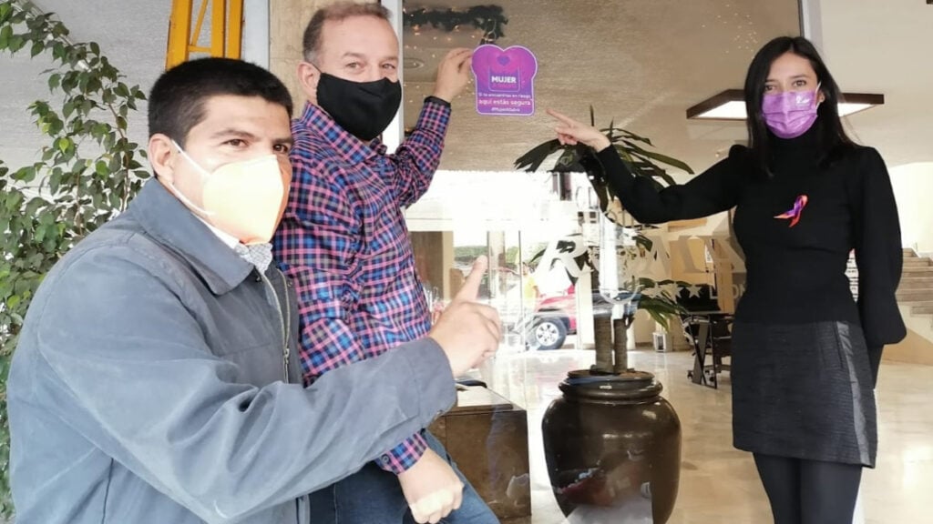 De esta manera, la mujer que se sienta en riesgo puede llegar directamente a estos establecimientos que cuentan con el sticker distintivo, en donde el personal de primer contacto del establecimiento la atenderá de acuerdo con el decálogo de actuación y se vinculará de inmediato con personal del IMMujeres, para seguir los protocolos de atención necesarios de acuerdo a cada uno de los casos.