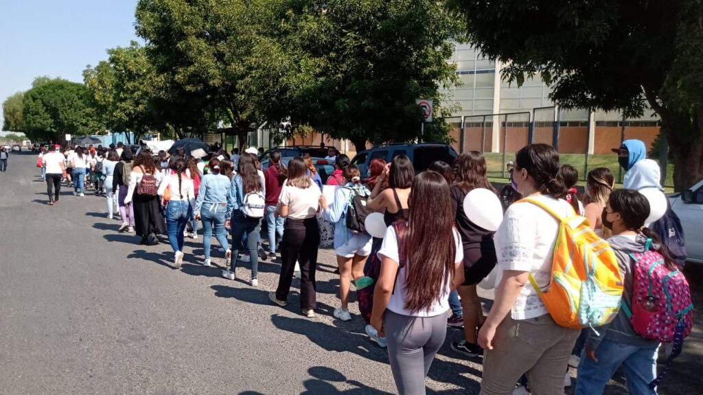 Con globos, cartulinas y veladoras, más de 200 estudiantes recorrieron las calles de León antes de llegar a su destino final