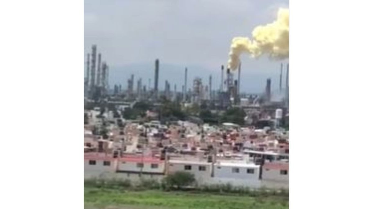 A través de las redes sociales la población comenzó a compartir fotografías de la nube que es expulsada de una de las plantas de la refinería.