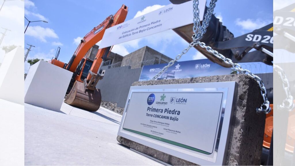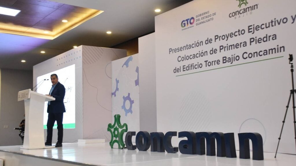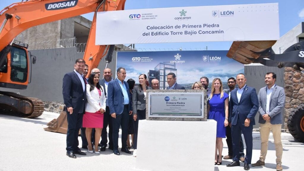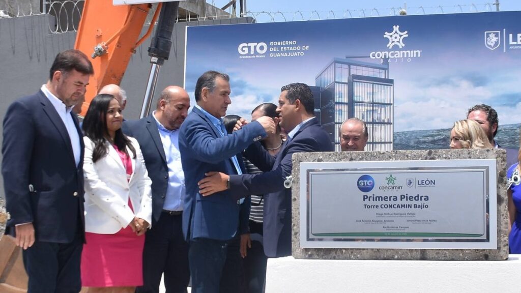 A 18 años de su planeación, este miércoles fue colocada la primera piedra de la Torre Bajío Concamin con el apoyo de cámaras, asociaciones y el impulso del gobierno estatal y municipal.
