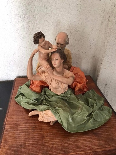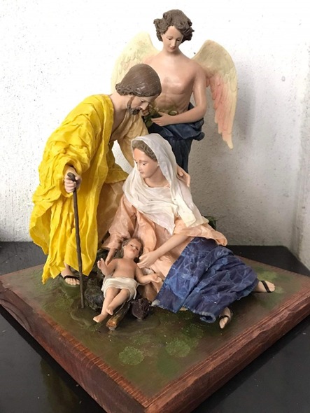 Esta creación está inspirada en la pintura de Miguel Ángel de la Sagrada Familia, realizada en bulto completamente hecha a mano, rescatando las tradiciones de la cuidad e innovando con la técnica.