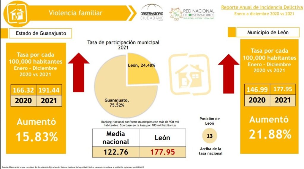 De estas cifras, León registra cerca del 25%, es decir, uno de cada cuatro casos de violencia reportados en la entidad ocurren en dicha ciudad.