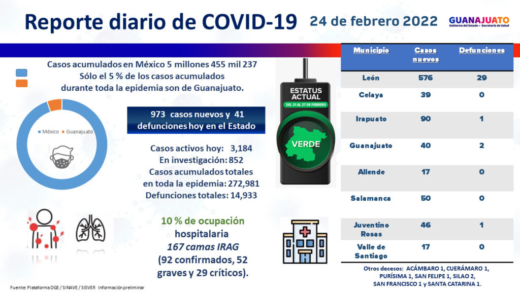 Hay además 852 guanajuatenses que permanecen aislados y en espera de sus resultados de laboratorio para saber si son positivos al virus.