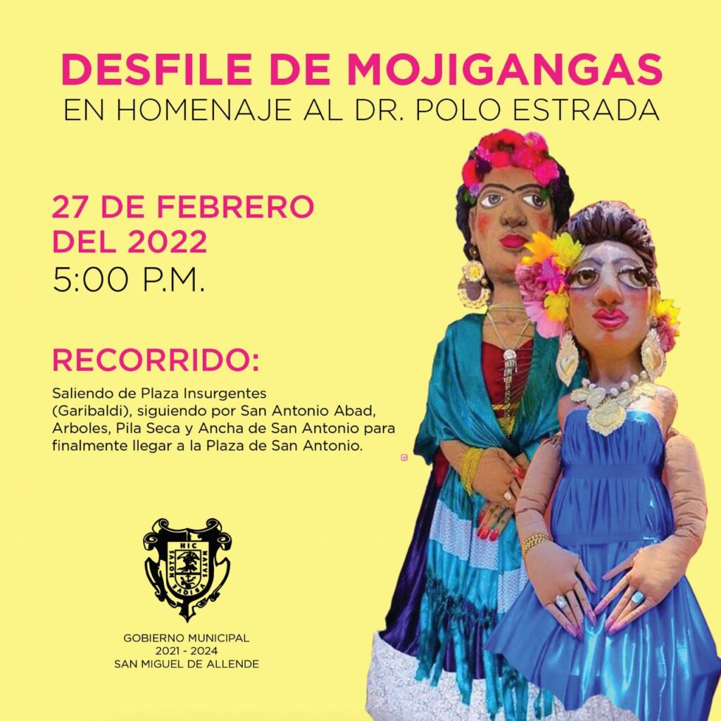 El mismo domingo se realizará el Desfile de Mojigangas, en honor al doctor Polo Estrada, quienes el “maestro cartonero” entre los sanmiguelenses y particularmente en el barrio del Valle del Maíz; a él se le atribuye el prestigio, renombre y presencia nacional e internacional de mojigangas en otras festividades por todo el mundo.