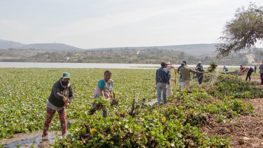 A partir de este lunes los pescadores trabajan para extraer lirio en las comunidades de Flores de Begoña, San Marcos de Begoña, El Salitrillo, Agustín González, Presa Allende y Corral de Piedras de Abajo; pero los esfuerzos siguen siendo insuficientes, ya que el lirio se está reproduciendo más rápido.