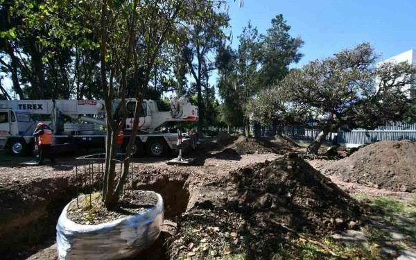 Tres ejemplares arbóreos se trasplantaron de la zona donde se construirá la Torre de Consultorios del Hospital General a un área aledaña al Parque Irekua.