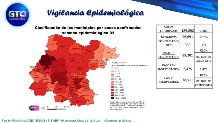 De acuerdo a información de la Secretaría de Salud de Guanajuato (SSG), la cifra más elevada durante los primeros diez días del año pasado fue de 778 casos y sería el 16 de enero cuando se superaría los 3 mil 300 casos.