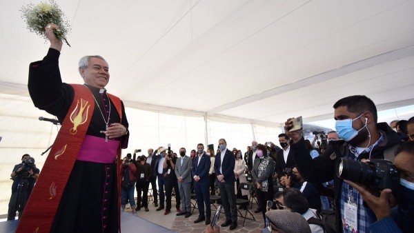 El pasado 14 de enero el prelado leonés bendijo las instalaciones del recinto ferial y dio un mensaje de unidad a toda la ciudadanía, sin cubrebocas, ante poco más de 200 personas.