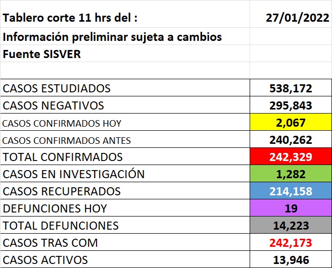 En el panorama nacional se han confirmado 4 millones 730 mil 669 casos en lo que va de la pandemia.