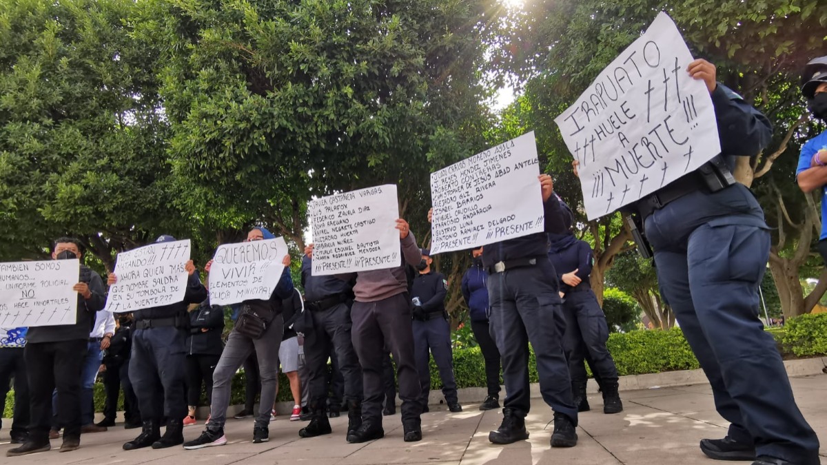 La mañana del miércoles al menos unos 50 elementos de la Secretaría de Seguridad Ciudadana de Irapuato, se manifestaron afuera de la presidencia municipal para exigir mejores condiciones laborales, pero además mayor equipo para enfrentar a la delincuencia organizadas.Los elementos preventivos dijeron tener miedo de ser víctimas de asesinato, luego de los ataques en los últimos meses en contra de sus compañeros. El más reciente, el del martes cuando mataron al comandante Juan Carlos Moreno Ayala.Una comitiva conformada por cinco policías se reunieron con el secretario del Ayuntamiento, Rodolfo Gómez Cervantes, y el secretario de Seguridad Pública Ciudadana, Ricardo Benavides Hernández, para escuchar sus peticiones. De la reunión salieron con acuerdos firmados en un documento que solicitaron los propios elementos de seguridad.El domingo pasado el exdirector de Policía de Irapuato, J. Reyes Méndez, fue asesinado a balazos cuando salía de su casa ubicada a unas cuadras del C4 de ese municipio.El lunes por la mañana el secretario de Seguridad Pública Ciudadana, Ricardo Benavides Hernández, confirmó que sí había recibido amenazas, por lo que habría presentado su renuncia apenas 11 días después de haber tomado el cargo.Días previos, su jefe de escoltas también fue baleado a pocos días de haber sido asignado para ese puesto, esto sucedió cuando salía de casa en compañía de su papá, otro policía, pero ya retirado.El martes por la tarde, el comandante Juan Carlos Moreno Ayala, fue asesinado cuando se dirigía con su familia al salir de su turno.Durante la manifestación, los policías expresaron su preocupación ante el nulo apoyo que reciben para combatir principalmente a los grupos de la delincuencia organizada que van mejor armados que ellos.