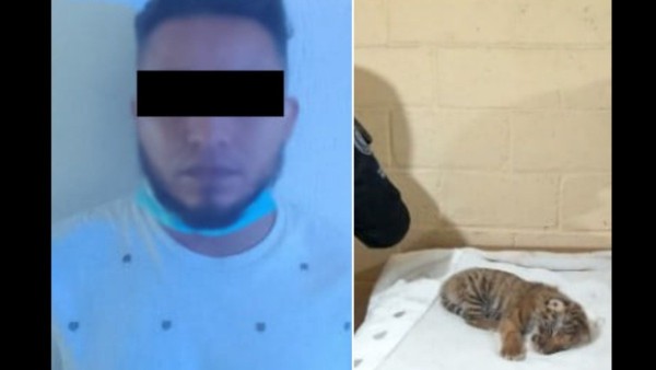Un hombre fue detenido por policías de Celaya porque llevaba un cachorro de tigre de bengala envuelto en una toalla.