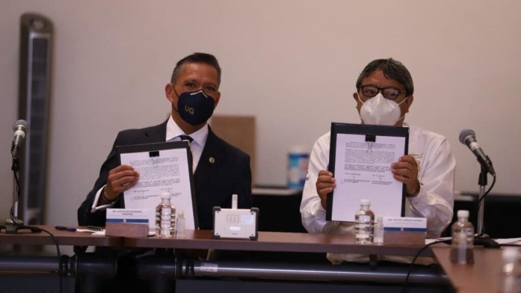 La firma la encabezó el rector general de la UG, Luis Felipe Guerrero Agripino y Víctor Jiménez Ramírez, por el ASTAUG.