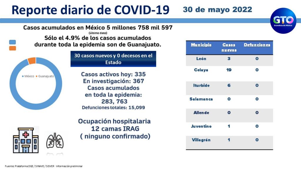 La Secretaría de Salud de Guanajuato (SSG) reportó este lunes que la entidad no tuvo defunciones ni hospitalizaciones por coronavirus.