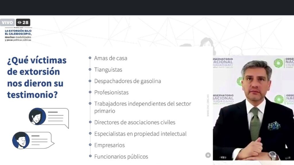 De acuerdo al análisis que realizaron en el Observatorio Nacional, se identificó que la extorsión es un delito de alta frecuencia y bajísima denuncia; esta última derivada a cuestiones atribuibles a las autoridades, explicó el director de la organización, Francisco Rivas.Y es que la “respuesta brilla por su ausencia” y únicamente la tarea de las autoridades se acota a difundir información preventiva y números telefónicos. Y si hay denuncia, simplemente no le dan seguimiento, y el peor de los casos es que la extorsión provenga de las mismas autoridades, denunció.A nivel nacional, únicamente en los estados de Aguascalientes, Michoacán, Morelos y Querétaro, la extorsión no figuran entre los dos principales delitos más recurrentes. Es decir, que en el resto del país, incluyendo Guanajuato, la extorsión está entre los dos principales delitos que padecen empresarios micro, pequeños y medianos.Eso sí, destacó que Guanajuato está entre las ocho entidades del país en promover iniciativas que permita legislar en la materia.Las principales víctimas de la extorsión son las amas de casa, tianguistas, despachadores de gasolina, profesionistas en diferentes ramas, trabajadores independientes del sector primario, directores de asociaciones civiles, especialistas en propiedad industrial, empresarios y funcionarios públicos.Francisco Rivas detalló que la extorsión tiene diferentes modalidades: la telefónica, por medios digitales-web, el fraude cibernético y el cobro por derecho de piso; este último mucho más relacionado con el crimen organizado. Además, agregó aquel que está relacionado con el monopolio de venta o producción de algún producto, cabe en esta figura.Entre los victimarios, igual menciona a las organizaciones criminales, empresarios y autoridades en todos sus niveles, y los relacionados con la impartición de justicia, así como policías.Se estima que en el 2021 se cometieron 4 millones 910 mil 206 extorsiones en los hogares mexicanos, de los cuales solamente fueron denunciados 246 mil 138 casos, y solo en el 52.4% de los casos se inició una carpeta de investigación.Solamente en el 2.8% se puso a disposición de un juez al delincuente, o se otorgó el perdón; y únicamente en el 0.3% de los casos se logró la recuperación de los bienes.En ninguno de los casos hubo reparación del daño.Ante ese escenario urgió establecer marcos normativos acordes a lo que está ocurriendo, realmente ejercer la investigación, incluso social; darle valor y compartir información de los propios números y maneras en las que se ejecuta la extorsión.MEJZ*