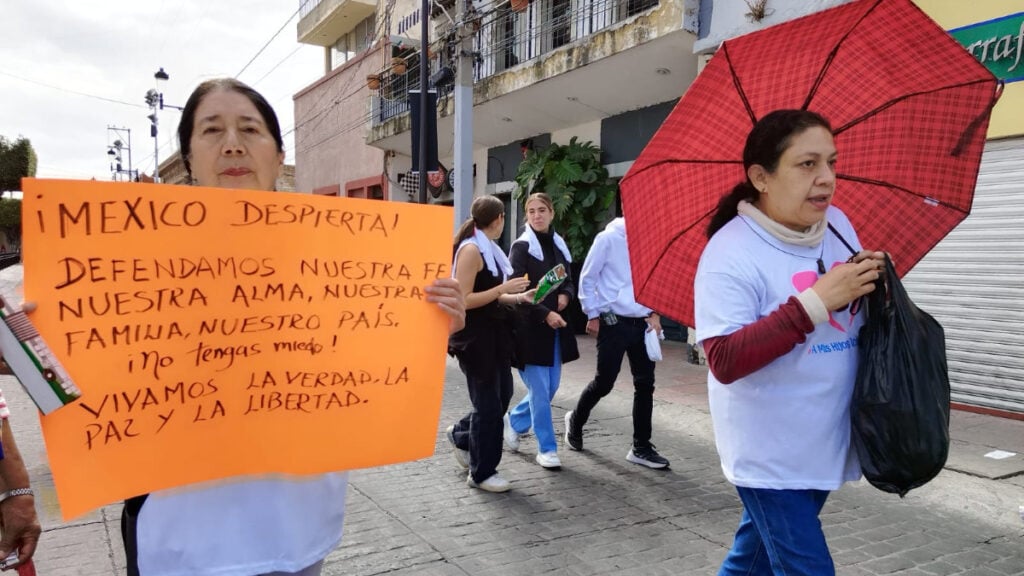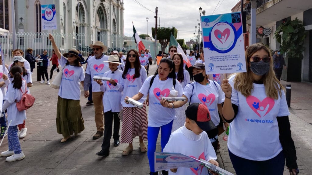 Alrededor de 50 personas marcharon en contra del nuevo modelo educativo impulsado por el gobierno federal; entre sus principales preocupaciones destacaron temas educación y orientación sexual en el aula.