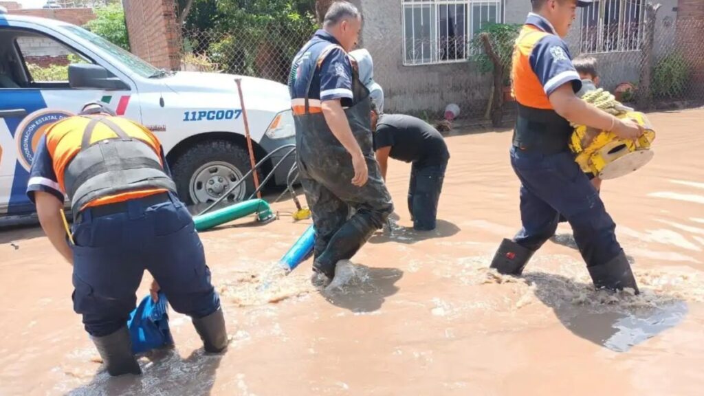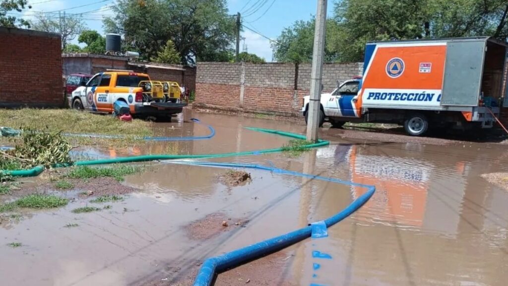 El gobierno municipal informó que elementos de Protección Civil (PC) de Pénjamo, junto con voluntarios y habitantes de las comunidades, trabajaron desde muy temprano en labores de contención y limpieza en la zona de más concentración de agua.