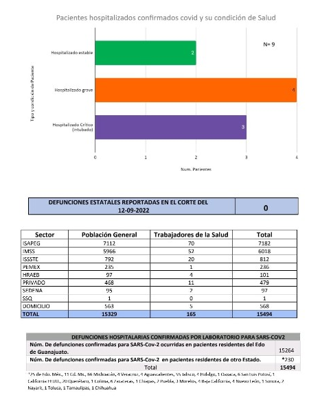 La Secretaría de Salud de Guanajuato (SSG) reportó este lunes sin decesos por covid-19, y el registro de nueve casos positivos al virus.