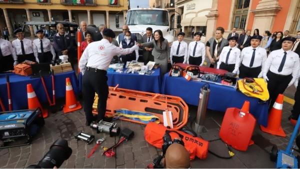 El equipo consta de una pipa de 10 mil litros, una unidad nodriza, equipo de mascarillas, motosierras, gatos hidroeléctricos de botella, plantas generadoras de luz, palas, cortapernos, camillas, mochilas aspersoras, entre otras herramientas.
