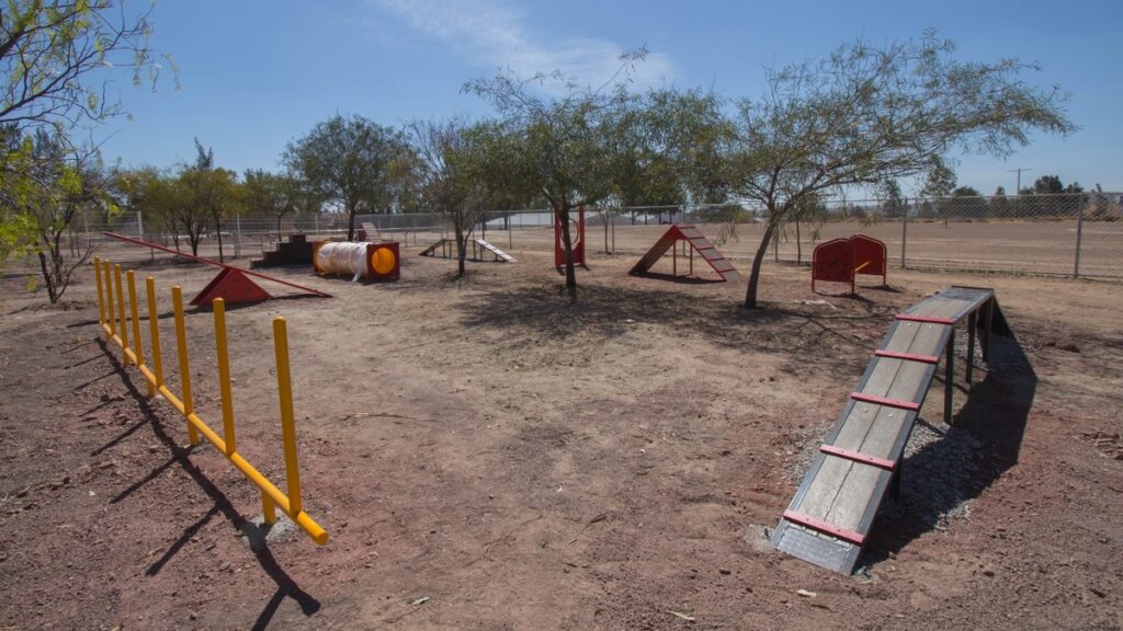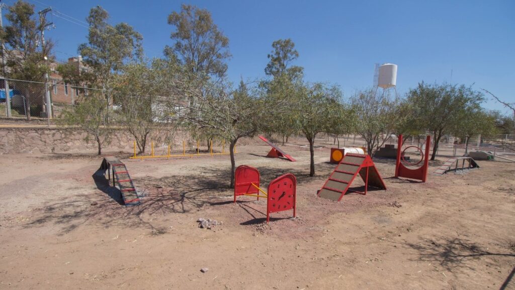Es un parque para mascotas de 2 mil 014 metros cuadrados con seis bebederos y 12 equipos de ejercitación. La construcción del parque para mascotas ya avanza hacia sus últimos detalles y dentro de poco se abrirá al público, anunció el presidente municipal de Guanajuato, Alejandro Navarro.