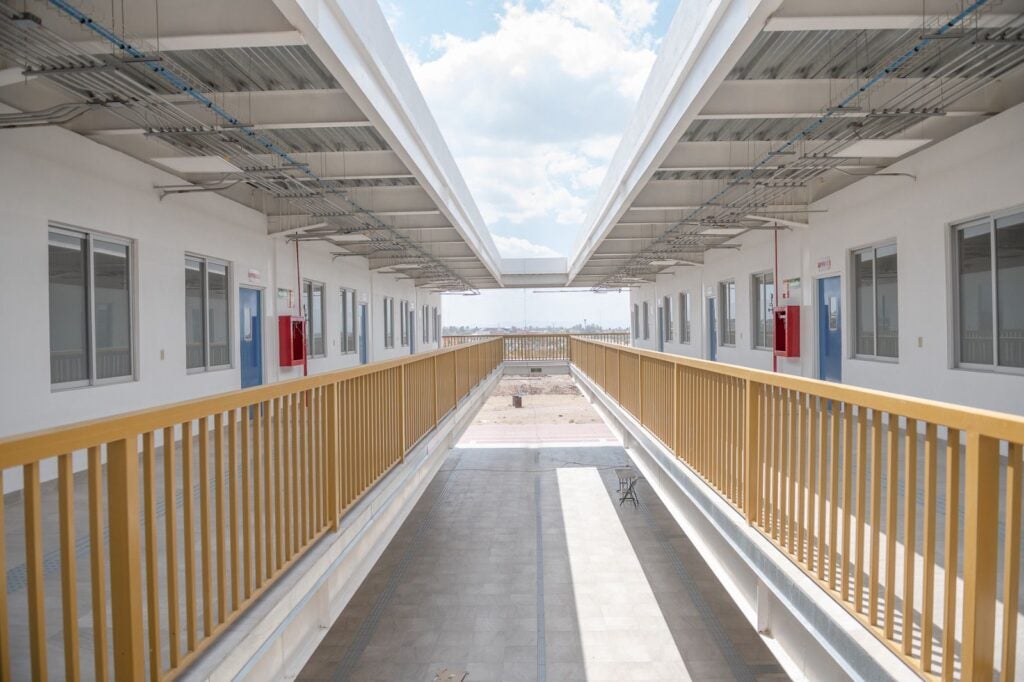 La infraestructura educativa que se está concluyendo consta de cuatro edificios: uno para el área administrativa con un acceso principal o pórtico; el de aulas de dos niveles, el espacio para talleres y laboratorio, además de un comedor escolar, áreas deportivas con gimnasio al aire libre con todos los servicios.
