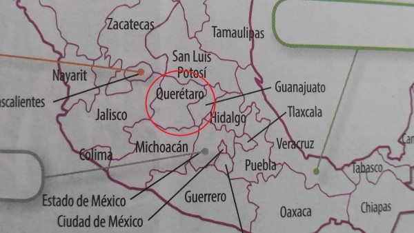 Ahora, a través de redes sociales, se evidenció un error en un mapa de la República Mexicana en el que se confunden los nombres de algunos estados, específicamente Querétaro y Guanajuato, cuyos nombres aparecen cada uno en el lugar del otro.