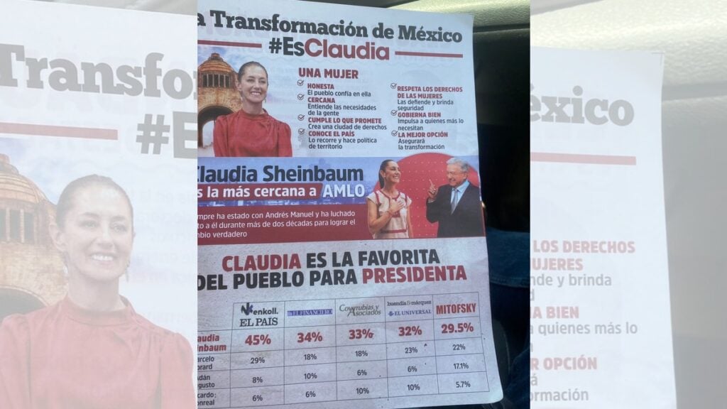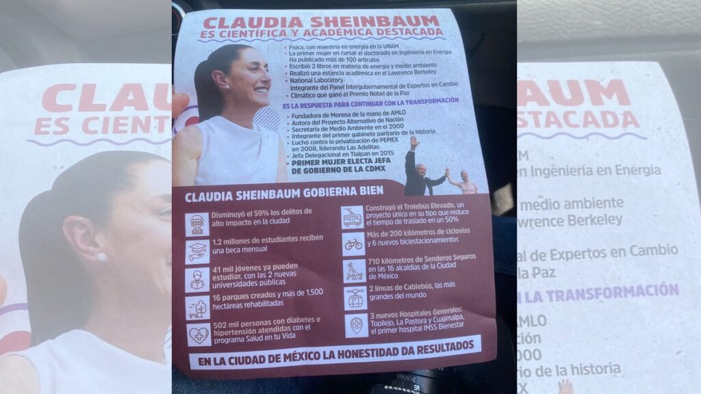 El folleto también hace referencia a su trayectoria como científica y los logros al frente como jefa de gobierno de la Ciudad de México; a sus más cercanos competidores, como el exsecretario de Relaciones Exteriores (SRE) y el exsecretario de Gobernación, Adán Augusto, los pone con bajos números de popularidad.