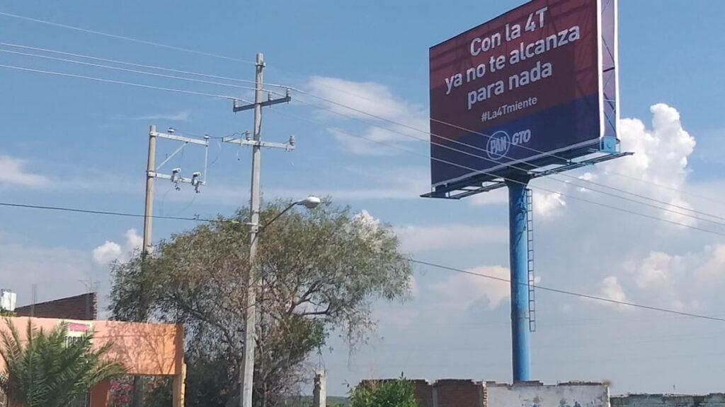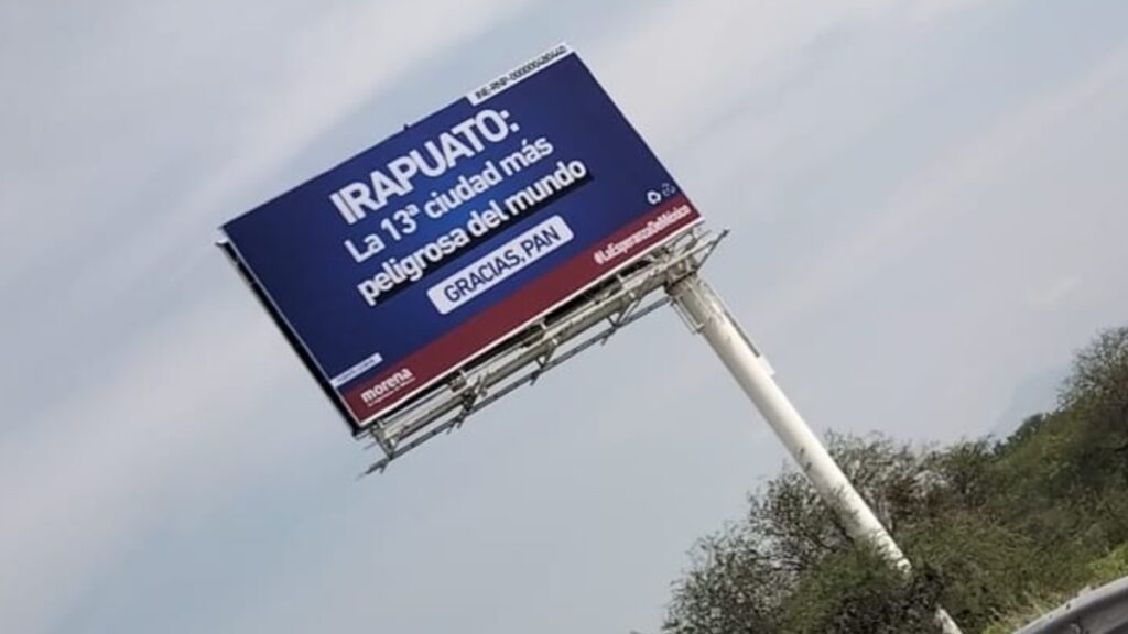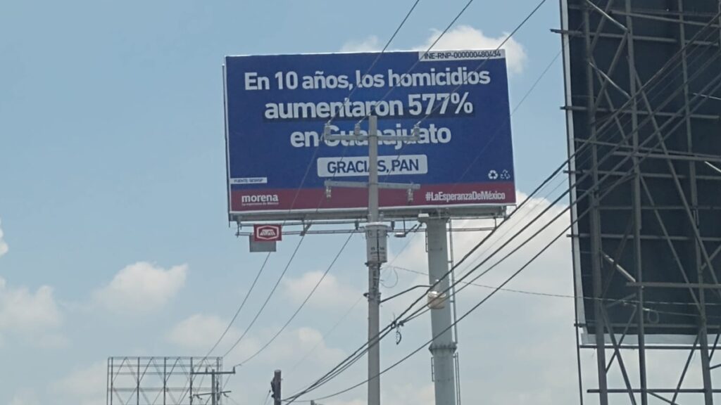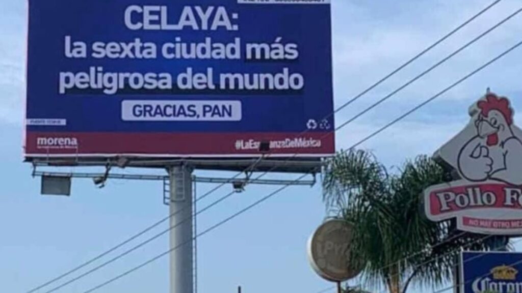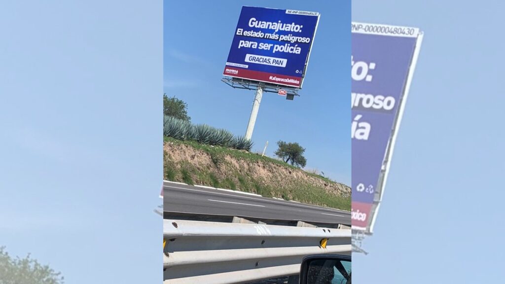 León, Guanajuato - La carretera que conecta a las ciudades del corredor industrial, son el escenario de un encontronazo entre el Partido Acción Nacional (PAN) y Morena, que a través de espectaculares, denuncian incapacidad de frenar la pobreza, inseguridad, y hasta de la falta de medicamentos, culpando de todo ello a la 4T;mientras que los morenistas enfatizan el tema de la inseguridad.Uno de los espectaculares ubicado sobre la carretera 45, a la altura del municipio de Irapuato, y firmado por Morena, señala que es ‘Irapuato la 13ª ciudad más peligrosa del Mundo. Gracias PAN’; otro dice, ‘Guanajuato: el estado más peligroso para ser mujer. Gracias PAN’ y uno más a la altura del municipio cajetero, ‘Celaya: la sexta ciudad más peligrosa del mundo. Gracias PAN’.