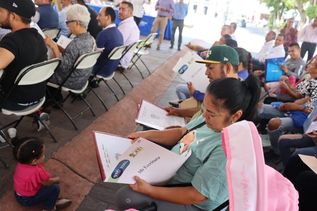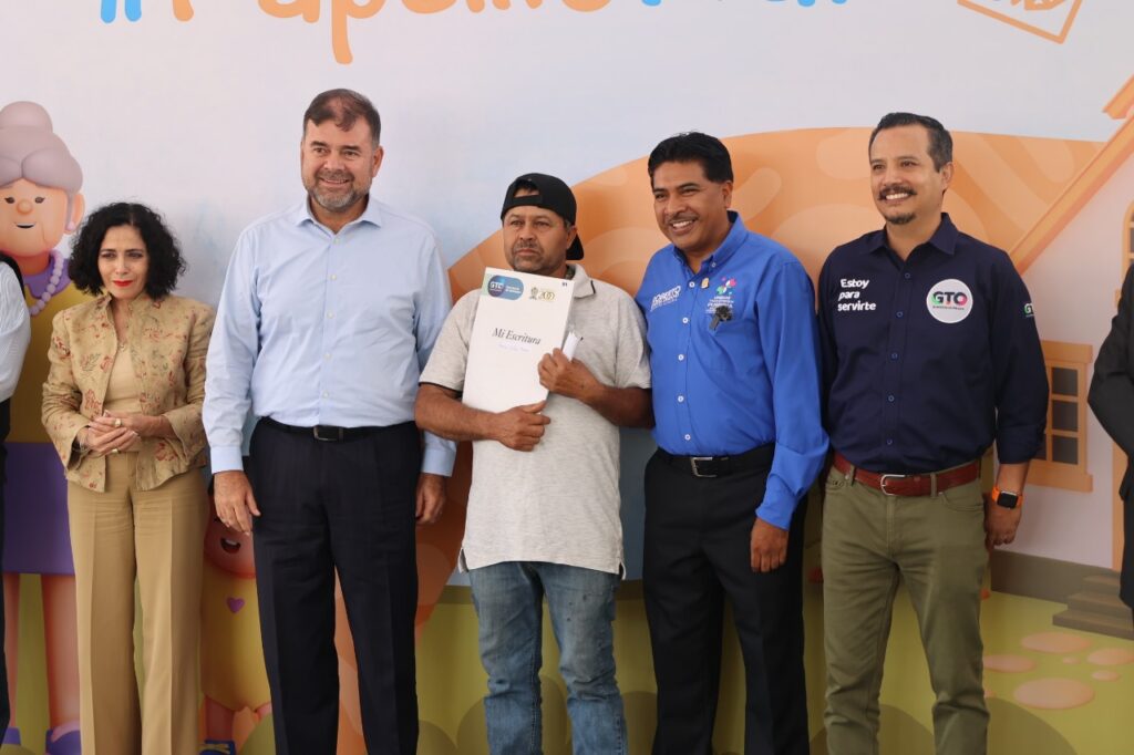 Fueron escrituradas 95 propiedades familiares de las colonias Álamos del Vergel, Amanecer, Amanecer segunda etapa, Bello Horizonte, Emiliano Zapata, Juan Pablo II en colonia Guanajuatito, La Brisa, Los Mirasoles, Parque de San Jerónimo, Pradera de Cañada de Sotos, Privada Palomas, Santa Cecilia, Tepeyac de Las Covachas, Valle de Águilas, Vergel de la Pradera, documentos que integraron los Notarios Públicos 10 y 18, respectivamente, María Esperanza Camarena Maldonado y Arturo Quintana Martínez, aunque en el acto protocolario se entregaron únicamente 10.