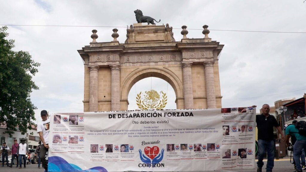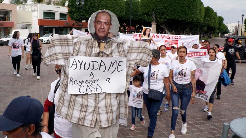 “Fue lo que me llevó a formar este colectivo. En el camino me he encontrado compañeras. Todas son diferentes historias, pero todas con el mismo fin”.A su lado marchan otras familias que buscan a sus seres queridos. Llevan pancartas, globos y dibujos.