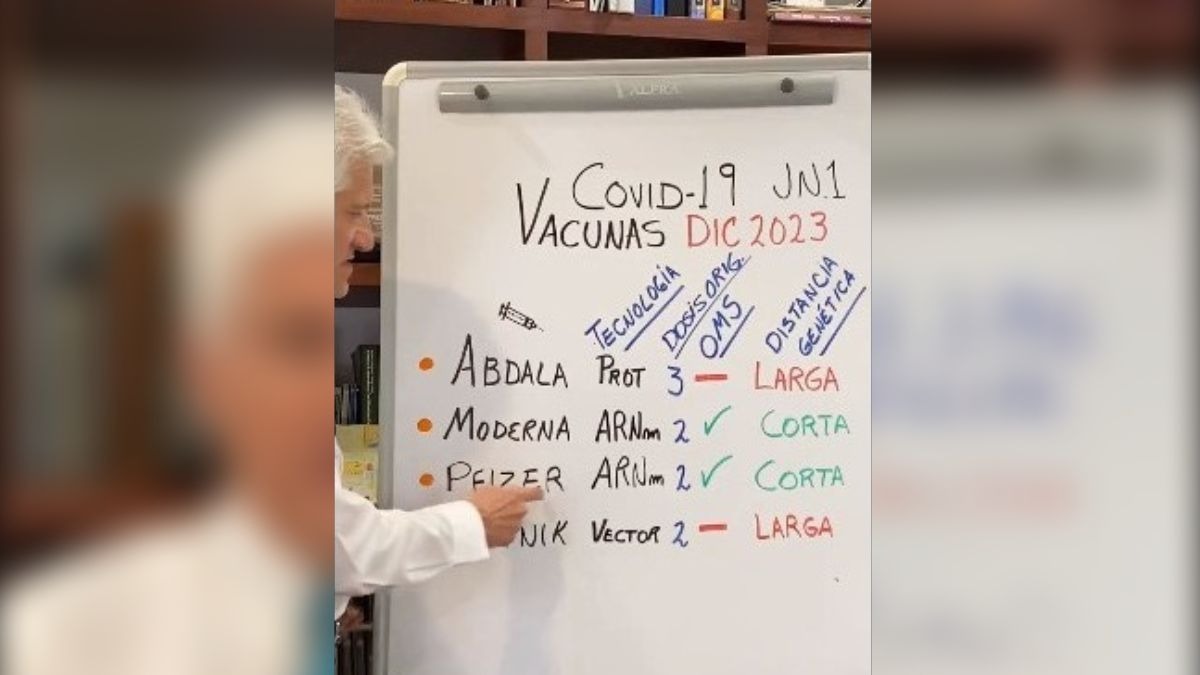 Hay que ponerse la vacuna contra covid-19, en México ya se comercializan las vacunas de Moderna y Pfizer que son vacunas de ARNm 2 de distancia genética corta”, dijo.“Esa distancia genética corta quiere decir que se parecen más a los virus actuales”, precisó. Aunque Abdala y Sputnik son vacunas seguras, hay menos evidencia que te van a proteger contra los virus actuales, pero el refuerzo de la vacuna puede proteger contra enfermedades graves y muertes.