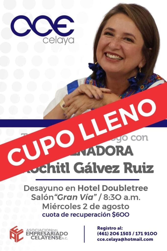El solo anuncio de la visita de la senadora Xóchitl Gálvez Ruiz a la entidad, ha provocado tanta inquietud, que en menos de una semana se agotaron los espacios para el encuentro que sostendrá con empresarios del municipio de Celaya.