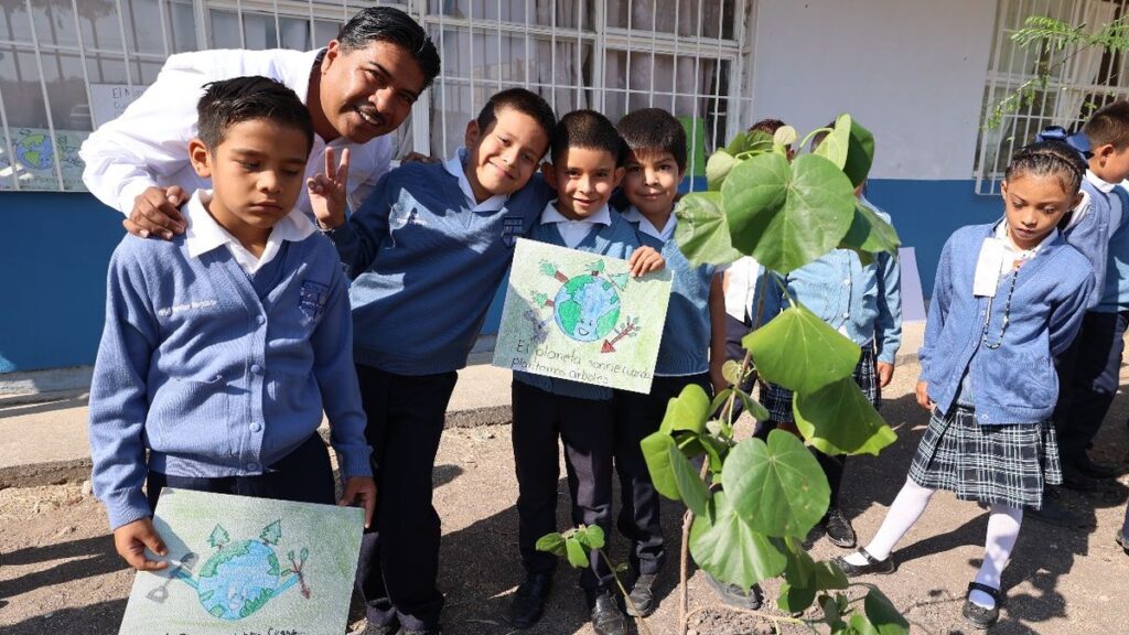 Roberto García Urbano dijo que Purísima del Rincón está hecho para trascender con la calidad en cada una de las habilidades de los purisimenses que hacen notoria la fuerza de este municipio.Juntos en un compromiso por el cuidado del medio ambiente, plantaron en la escuela 50 especies de árboles y plantas que lo mismo apoyarán para la polinización de abejas que en el cuidado de la mariposa monarca, como la colaboración a favor del cuidado del medio ambiente.