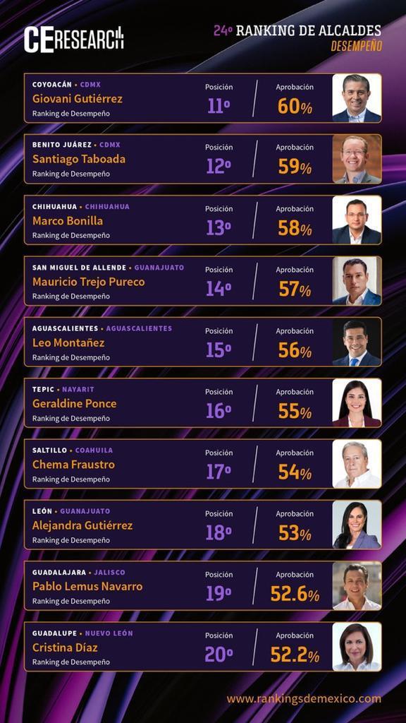 Además, y de acuerdo al Ranking de Alcaldes de México de la empresa CE Research, también el edil Mauricio Trejo se colocó con el mejor desempeño en Guanajuato, por encima de la alcaldesa de León, Alejandra Gutiérrez Campos, quien se ubicó en la posición 18.
