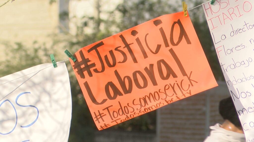 Con lonas y carteles empleados se colocaron fueran del Hospital Pediátrico para exigir una plaza