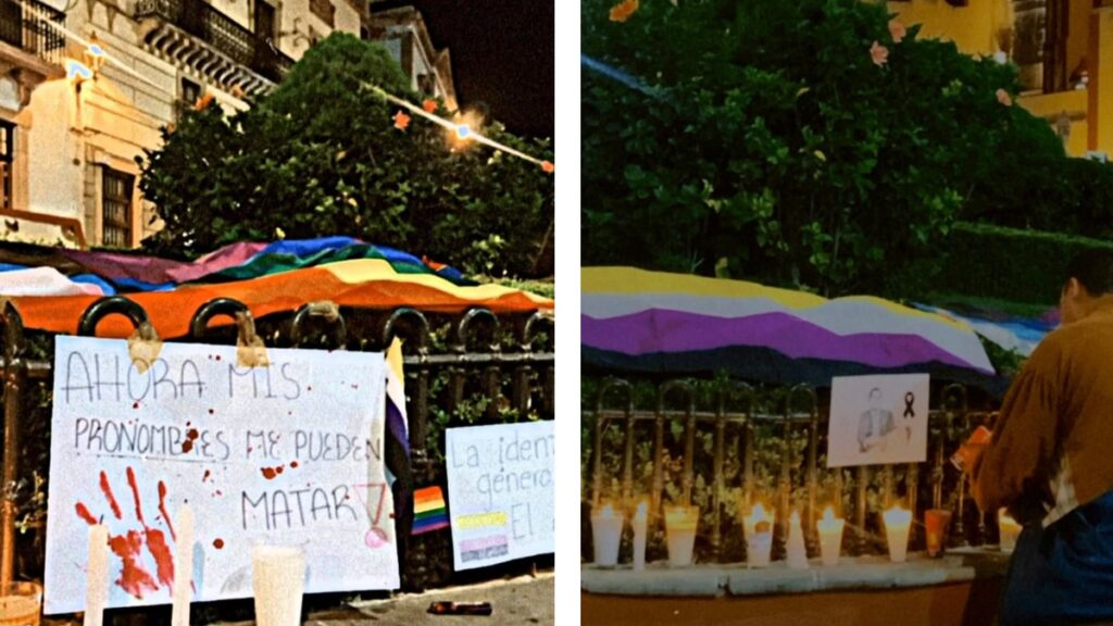 Ahora mis pronombres me pueden matar”, citaba una cartulina colocada junto a veladoras.