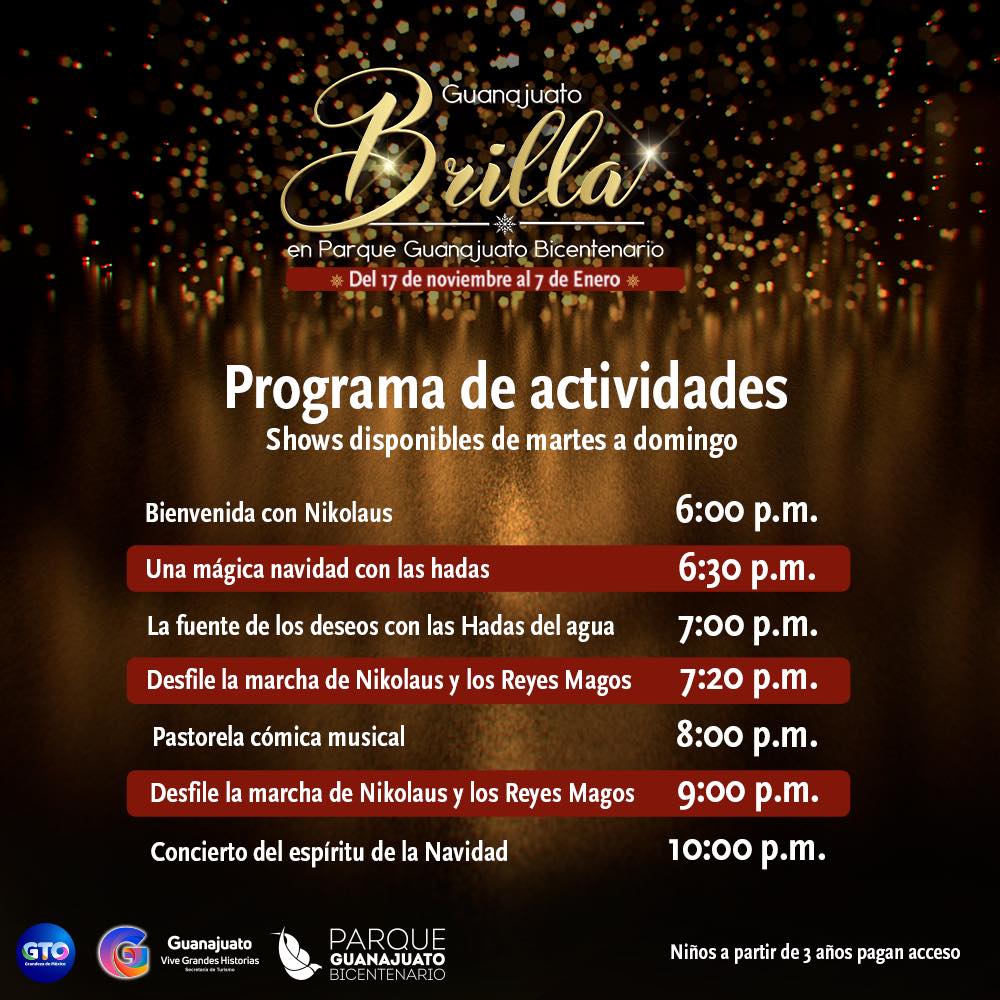 Mientras se lleve a cabo, Guanajuato Brilla presentará una villa navideña iluminada y seis shows en vivo diarios que servirán para entretener a chicos y grandes.