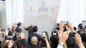 Durante la Sesión Solemne se develó la inscripción de la leyenda “2023 Bicentenario del Heroico Colegio Militar”.