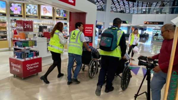 Asimismo, para las personas que viajan en sillas de ruedas, se les coloca una cinta para gafete, con la intención de que todo el personal del aeropuerto sepa que es parte delos beneficiarios del programa GAP Blue.Paola Olivo dijo que es importante que todo mundo conozca el servicio y que sean beneficiados al obtener estos servicios.