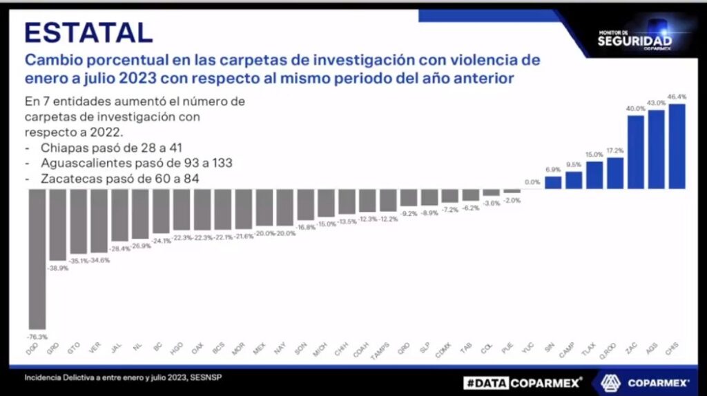 En ese sentido, Guanajuato registra una reducción considerable en carpetas de investigación abiertas por robo a negocio con violencia.
