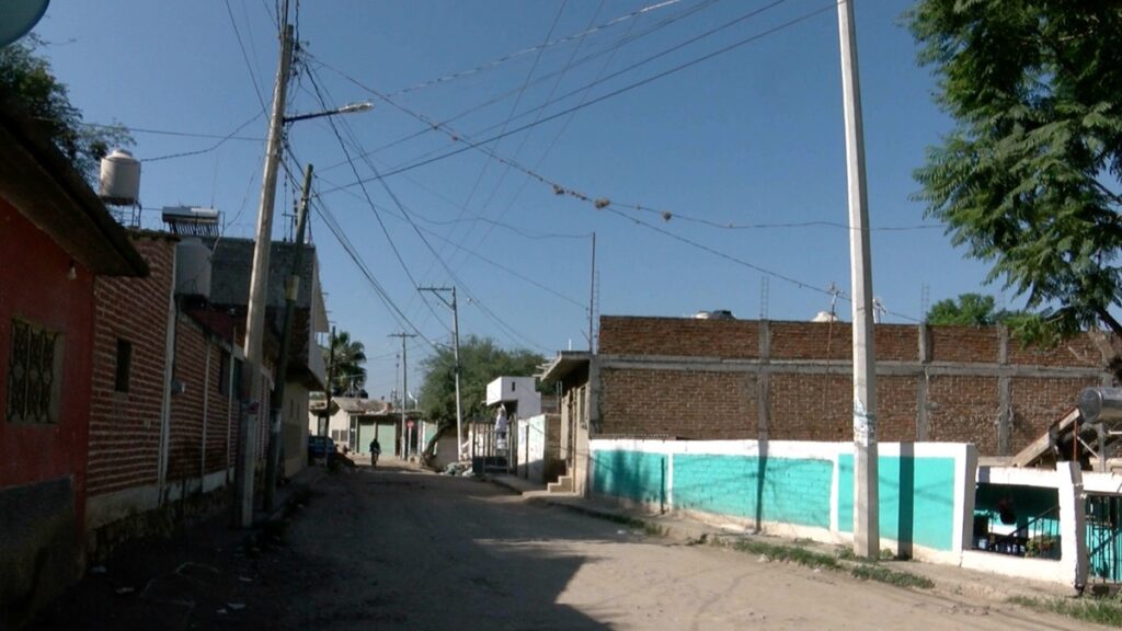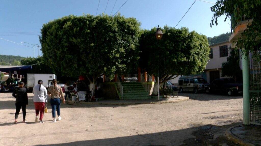 En la comunidad hay al menos cinco bardas con pintas de las siglas de uno de los grupos del crimen organizado que operan en el estado. Prefiere no hablar de eso. Recientemente fue testigo de un hecho impactante para la comunidad.