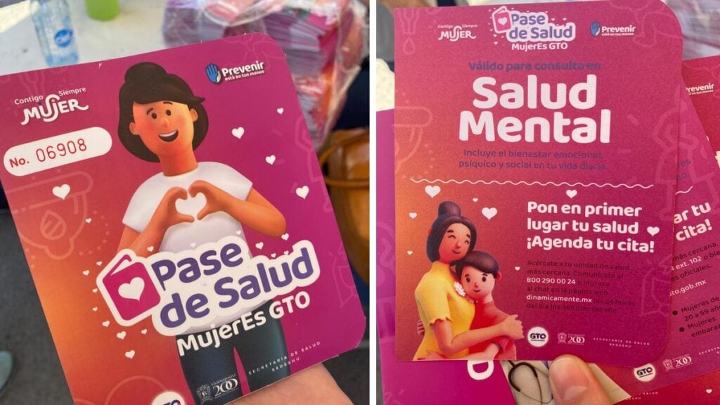 La cartilla contiene el pase para 10 diferentes servicios que van desde la realización de exámenes para detectar cáncer cervicouterino, mastrografía, papanicolaou, así como detección de enfermedades de transmisión sexual.A estos se suman atenciones nutricionales, de salud sexual y reproductiva, dental, de salud mental, entrega de hierro y ácido fólico, atención a mujeres embarazadas, así como de métodos anticonceptivos.Durante la presentación del Pase de Salud Mujeres Gto, la titular de la Sedeshu, Libia Dennise García Muñoz Ledo, aseguró que con esta estrategia integral se busca fortalecer a las mujeres.Y es que estrategia integral de apoyo a la mujer, está conformada por la tarjeta Mujer Contigo sí, que consiste en la entrega de mil pesos mensuales durante 8 meses; la entrega de un kit especial para recién nacidos al momento de registrarse; y ahora, el Pase de Salud Mujeres Guanajuato.Si queremos tener un Guanajuato fuerte, necesitamos a mujeres fuertes y sanas, por eso hoy estamos lanzando esta estrategia Pase de Salud Mujeres Guanajuato, que va ser una cuponera”.