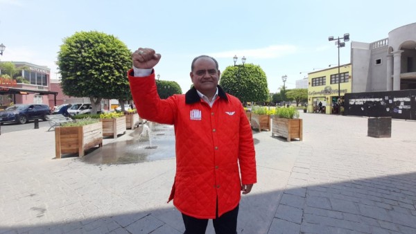 León, Guanajuato - El candidato llega solo acompañado de su escolta, lleva chamarra y tenis naranja fluorescentes, es magistrado con licencia y quiere ser senador de la república para Guanajuato por el partido Movimiento Ciudadano, es Jorge Lerma Santillán.