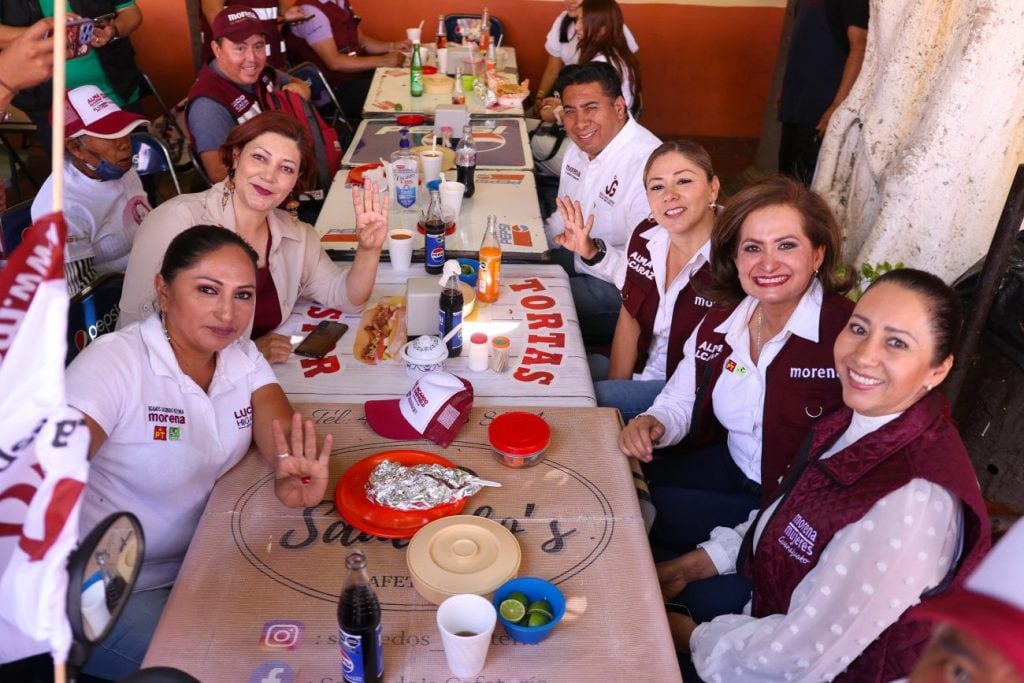 Por la mañana la candidata de la alianza ‘Sigamos Haciendo Historia’ realizó un recorrido por el jardín principal del municipio de Pueblo Nuevo en compañía de la candidata a la alcaldía, Wendy Mendoza.